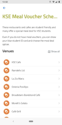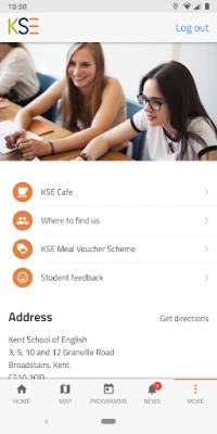 Udforsk campus og Broadstairs med KSE appens intuitive navigationsværktøjer. Find nemt vej til dine klasseværelser, aktivitetssteder og de forskellige skolebygninger. Er sulten begyndt at melde sig? KSE appen viser dig ikke kun menuen fra KSE Student Café med dagens fristende tilbud og måltidsløsninger, men også hvor du kan indløse dine værdikuponer til frokost. Og når du vil opleve Broadstairs uden for skolen, kan du bruge det indbyggede kort med ruteplanlægning til at udforske byen og finde vej til nye eventyr. Alt sammen for at sikre, at du føler dig hjemme fra dag ét.