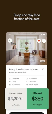 Oplev en smartere måde at rejse på og udforsk verden med Kindred. Forestil dig at kunne opleve nye byer og kulturer fra et lokalt perspektiv, helt uden de traditionelle omkostninger ved hotelophold. Kindred transformerer din bolig til din næste feriedestination ved at forbinde dig med et globalt fællesskab af ligesindede rejsende. Vores unikke model er baseret på princippet om gensidighed: Du tilbyder en overnatning i dit hjem og får til gengæld en overnatning i et andet medlemshjem. Det er en elegant udveksling, der åbner døre til uforglemmelige oplevelser.