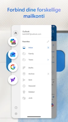 Outlook til Android tilbyder universel kompatibilitet, der forbinder dig på tværs af platforme. Uanset om du bruger Microsoft Exchange, Microsoft 365, Outlook.com, Gmail eller Yahoo Mail, får du en ensartet og kraftfuld oplevelse. Og for dig, der er på farten, holder ledsagerappen til Wear OS dig opdateret med dine mails og begivenheder direkte fra dit håndled. Med et fundament fra Microsoft er du sikret en robust og pålidelig løsning til din digitale hverdag.