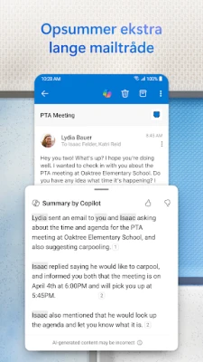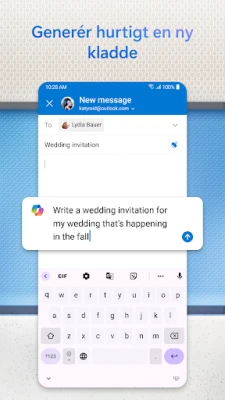 Fra mail til møde på et øjeblik – med Outlook til Android er din kalender aldrig længere væk end et par tryk. Planlæg dit næste arrangement, check din tilgængelighed, eller del den med kolleger uden at forlade appen. Har du brug for at vedhæfte et vigtigt dokument? Find det direkte fra din filoversigt og send det afsted med det samme, alt sammen inden for den samme intuitive grænseflade. Dette skaber en problemfri arbejdsgang, der understøtter din produktivitet overalt.